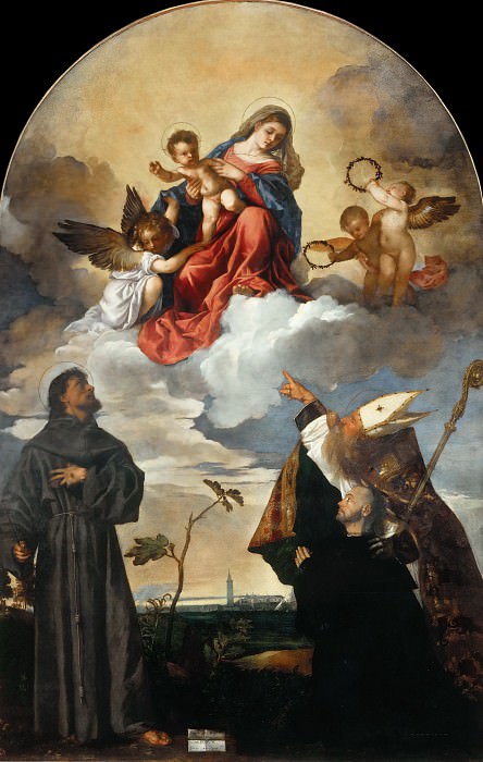 «Мадонна с книгой», Сандро Боттичелли, ок. 1480-81, «Мадонна с Младенцем со святыми Франциском, Людовиком Тулузским и донатором Луиджи Гоцци», Тициан, ок. 1520