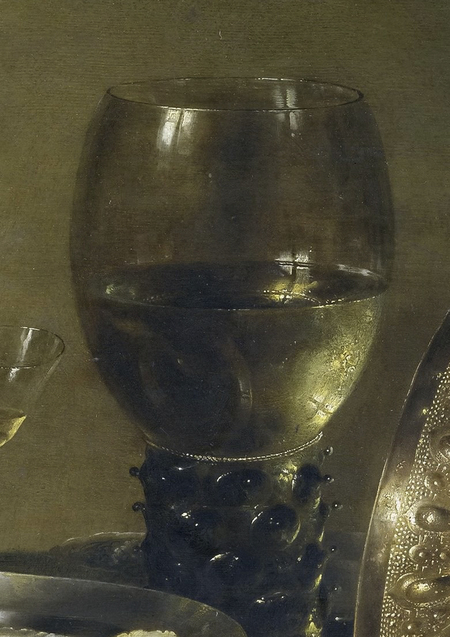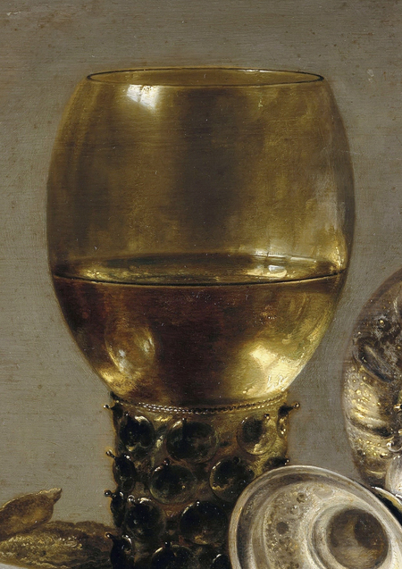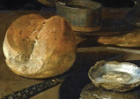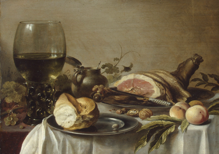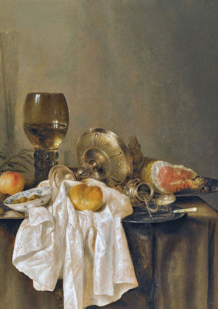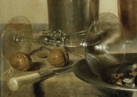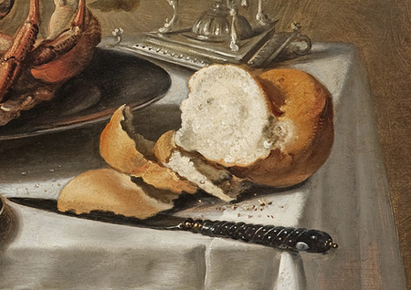 Виллем Клас Хеда, фрагмент «Натюрморта с ветчиной и хлебом» (1649)