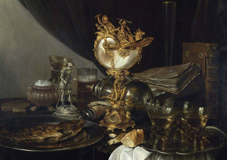 Виллем Клас Хеда, «Натюрморта с позолоченым кубком» (1635); Питер Клас, «Натюрморта с большим золотым кубком» (1624)