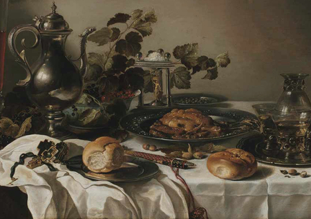 Художники зачастую изображали различные завтраки;. На столе они помещали еду (ежевичные пироги, фрукты, булочки и т. д.), специальную посуду (стеклянные бокалы, блюдца, солонки и т. д.), передавая фактуру, объем, цвет предметов. Монохромность натюрморта описывает гармонию, которая царит в помещении, создаёт утренний уют.