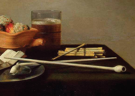 Питер Клас, «Натюрморт с глиняными трубками» (1636); Питер Клас, «Натюрморт с бокалом пива, сельдью и трубкой» (1647)