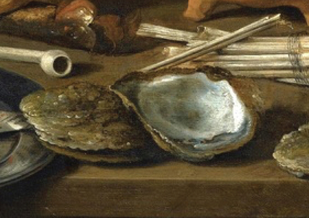 Морепродукты являлись дорогим удовольствием, поэтому зачастую они олицетворяли богатство. При этом сельдь имеет религиозный подтекст — она символизирует постную пищу. Устрицы же отсылают нас к «к кратким и сомнительным плотским удовольствиям» [15]. К тому же раковины — это некий символ смерти, ведь они были «останками когда-то живого животного» [16]. Курительная трубка также олицетворяет порочность и слабость людей перед искушениями. При это трубка предназначалась также и для надувания пузырей. Соответственно, она становится символом неожиданности смерти.