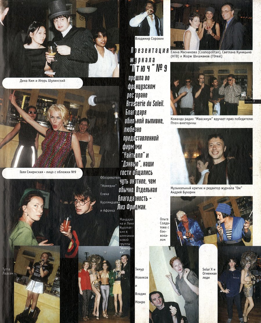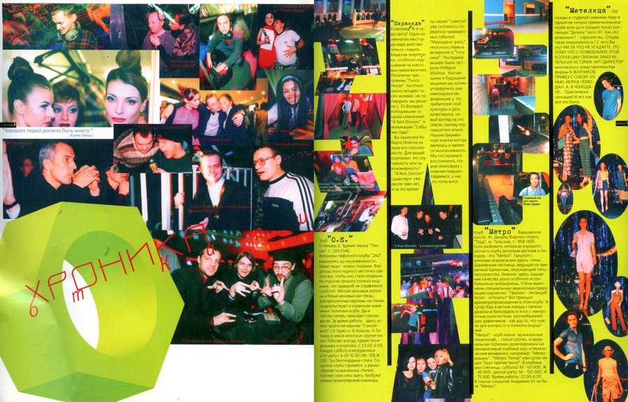 Помимо хроники «Птюч-клуба» на страницах журнала рассказывалось и о событиях других модных клубов Москвы и Санкт-Петербурга.