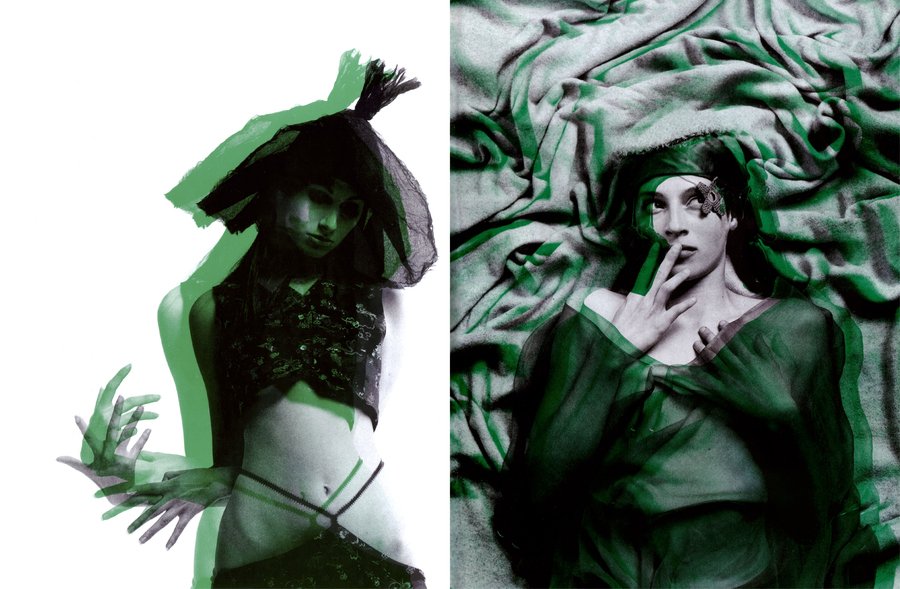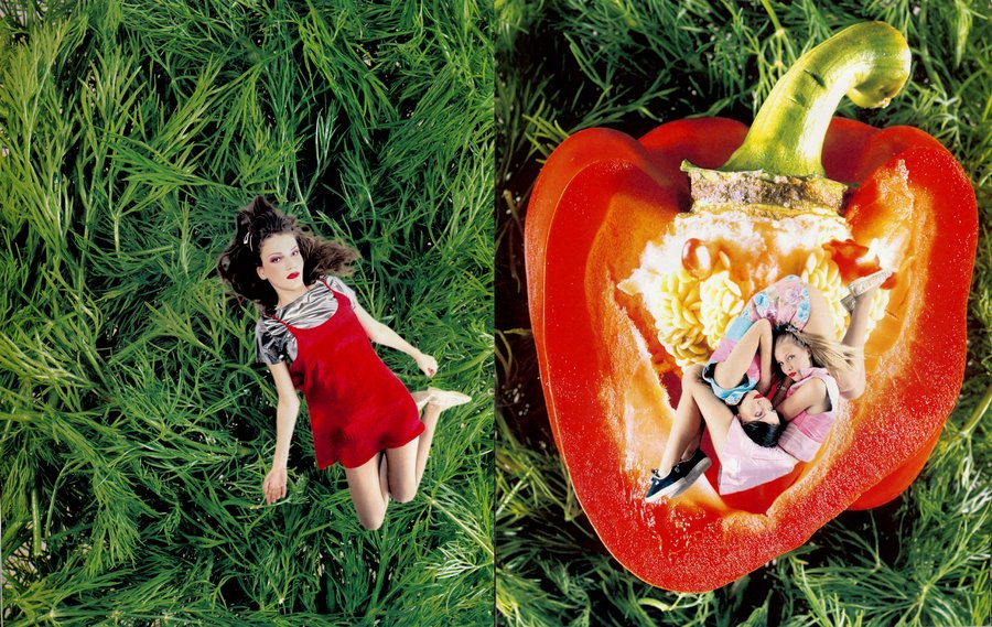 Кислотные фильтры, двойная экспозиция, намеренно «грязный» кадр, необычные позы, костюмы и яркие эмоции превращали каждую съёмку для журнала в психоделический документ времени. Эти кадры не просто иллюстрировали моду — они фиксировали дух бунтарства, где уродливое или странное становилось эталоном.