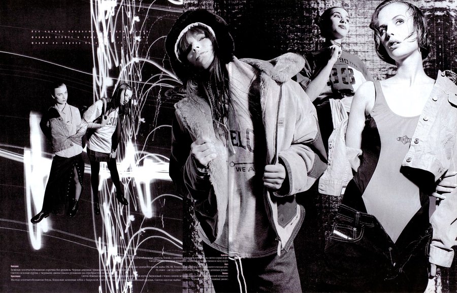 Интересно что журнал продвигал и культовые люксовые бренды вроде Valentino, Diesel и Dolce& Gabbana. Хотя основная аудитория не могла позволить себе такую одежду, эти бренды становились символами статуса для представителей маргинальных групп, посещавших модные ночные клубы. Это были не просто товары — это были символы. Реклама модной одежды работала как пропуск в другой мир, где индивидуальность и стиль становились новой религией.