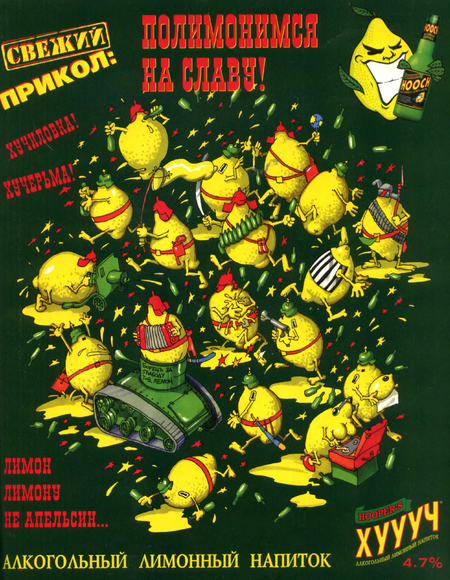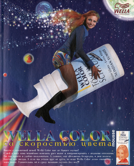 Важна и реклама в журнале ПТЮЧ, ведь она становилась частью визуального кода. Коллажи, смелые копирайты, нестандартные решения и яркий цвет — все это стало приёмами для рекламирования средств для волос, сигарет, бизнес-центров, радиостанций, напитков и многого другого.