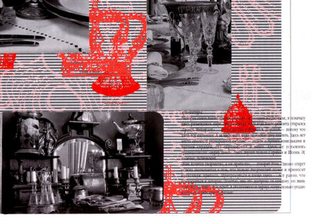 Иногда текст становился совсем нечитаем из-за неизкой контрастности букв и фона, узоров на фоне и символов, разбросанных по всему развороту. Все это превращало статьи в пёструю «кашу» и смысл было понять непросто.