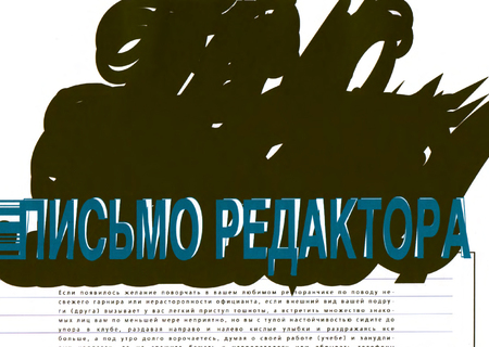 В этой части выделены и проанализированы частые приемы верстки, встречающиеся в журнале «ПТЮЧ». Такая смелость не была случайностью, она являлась визуальным манифестом 1990-х, отражая ключевые принципы времени: деконструкцию привычных форм, хаос и отказ от любых ограничений.