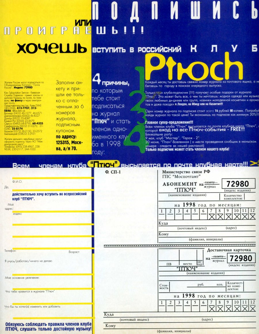 Реклама в журнале «ПТЮЧ» (выпуски 1997–1998 годов)