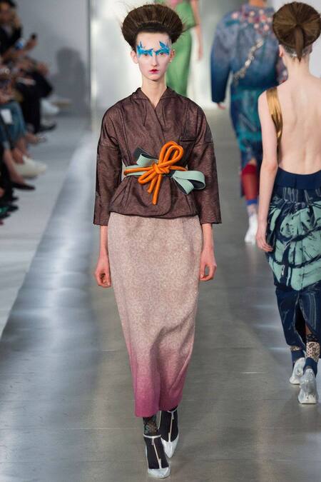 На сегодняшний день кимоно — это не только традиционная одежда, но и мощный тренд, оказывающий огромное влияние на мировую моду. Хотя в прошлом оно было вытеснено из повседневной жизни японок, оставаясь уделом лишь особых случаев, сейчас наблюдается его грандиозное возвращение. Кимоно снова является актуальным как для образов на каждый день, так и для больших мероприятий, вдохновляя дизайнеров на смелые эксперименты. Его уникальная эстетика стала источником вдохновения для многих, включая Джона Гальяно из Dior и Maison Margiela, который выпустил коллекцию женского кимоно из старинного оби, а также Кристиана Лубутена, чьи ботинки 2017 года отражают мотивы кимоно периода позднего Эдо. В 2016 году Том Браун показал миру линию из мужских деловых костюмов, вдохновившись кимоно, задав тренды на последующие года. Коллекции японских кимоно представили Александр Макуин, Ив Сен-Лоран и Кристобаль Баленсиага. В начале 20 века Поль Пуаре и Мадлен Вионне тоже создавали одежду в стиле кимоно. Джотаро Сайто, потомственный мастер кимоно и известный модельер, заслуживает особого внимания. Его появление на Mercedes-Benz Fashion Week Tokyo в 2006 году стало поворотным моментом, представив свежий взгляд на традиционную одежду. В отличие от многих, кто лишь заимствует элементы японского костюма, Сайто полностью посвятил себя кимоно, переосмысливая его классическую форму для современной аудитории.