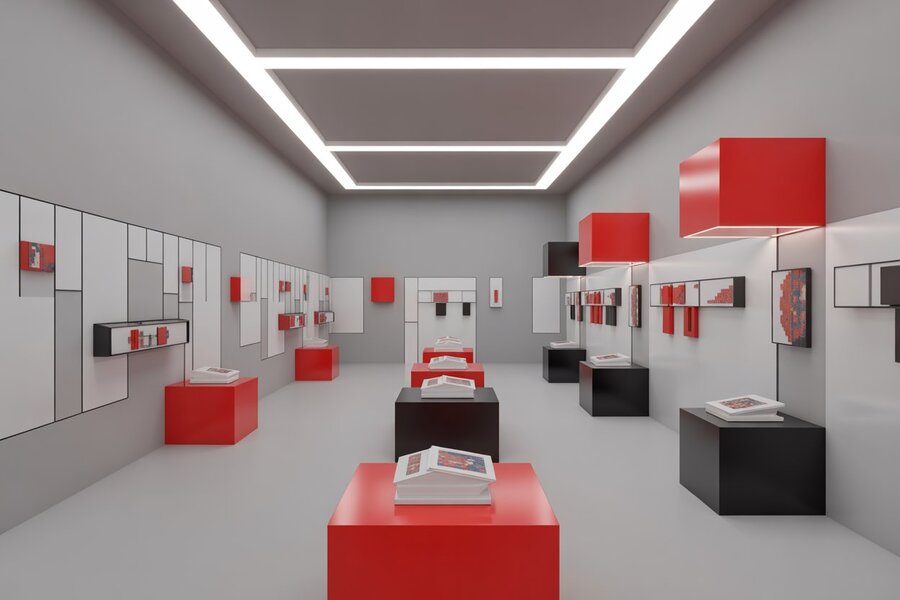 Мой проект развивался на основе предыдущей работы, где уже были разработаны фасады и графическая часть. В рамках модуля я создала два новых фасада Манежа в стиле Малевича, разработала концепцию интерьера офиса и магазина мерча выставки, а также создала фирменный стиль на основе своих графических работ, органично связывая архитектуру и визуальную идентику.