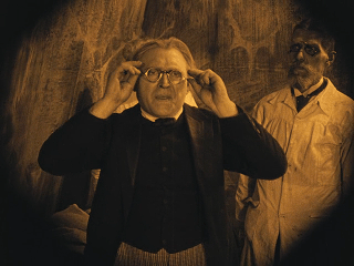 Раздвоение личности в «Кабинет доктора Калигари» (Das Cabinet des Dr. Caligari, реж. Роберт Вине, 1920 г.) визуально изображено разными способами, но самый очевидный: с помощью грима, костюмов и актёрской игры.