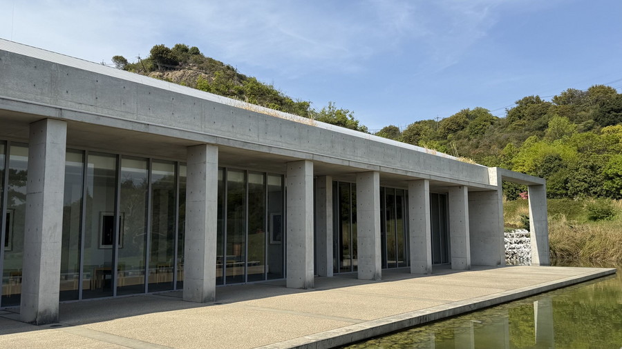 Сад камней храма Рёан-дзи (1499 г.) и галерея музея-отеля Benesse House Museum (Тадао Андо, 1992 г.).