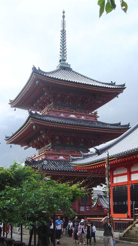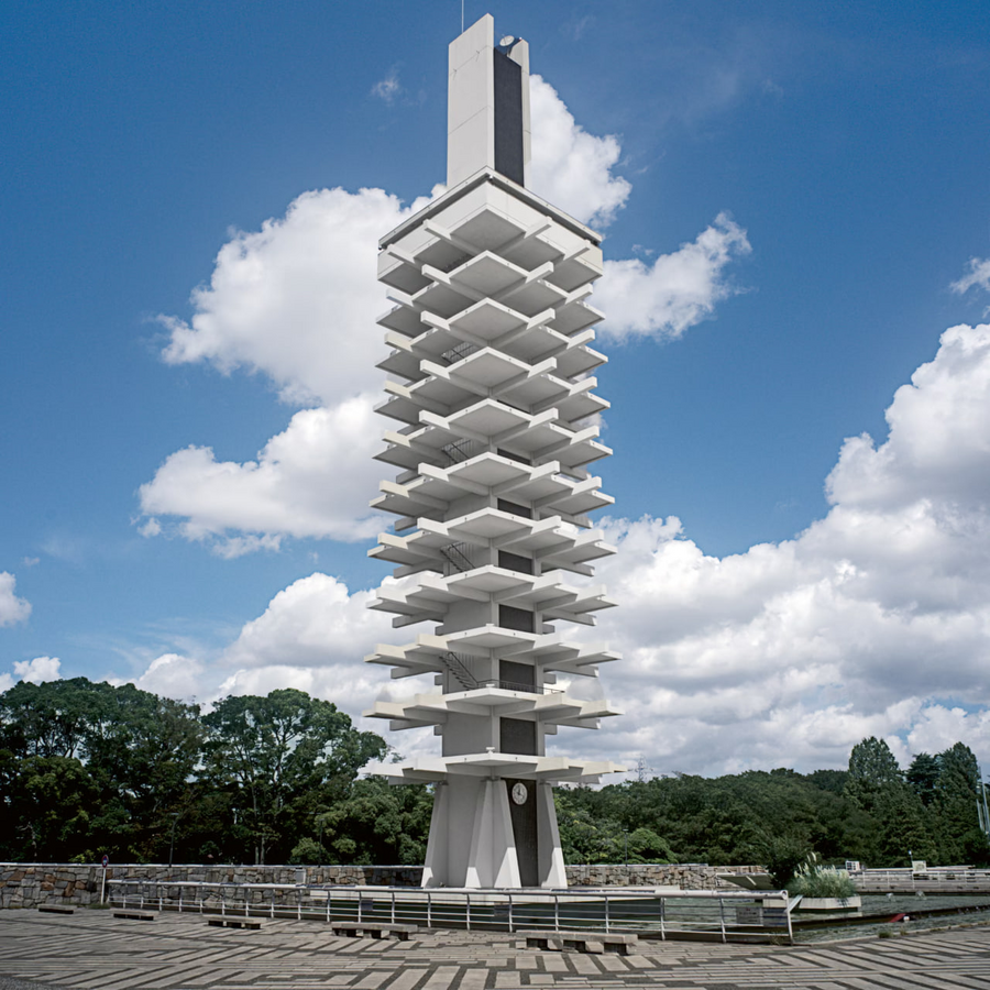 Диспетчерская вышка Олимпийского парка Комадзава (Ёсинобу Асихара, 1964 г.) и пагода храма Киёмидзу-дэра в Киото (ок. 780 г.).