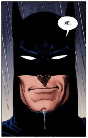 Более сложной и изысканной трансформацией является интеграция ономатопеи в само действие, когда вербальный знак сливается воедино с визуальным образом, образуя неразрывное целое. Ярким примером служит случай, когда слово «Взмах» графически изображается в виде лезвия меча, рассекающего воздух с молниеносной скоростью. В этой стратегии, которую Ник Сусанис образно определяет как создание «фиджиета» (фигура-глиф), звук материализуется, обретает физическую форму и становится неотъемлемой частью физического мира комикса. Ономатопея перестает быть простым комментарием к происходящему действию и превращается в само действие как таковое, стирая тонкую грань между вербальным описанием и визуальным событием. Звук нередко является не просто фоном, а неотъемлемым элементом кинетики персонажа, придавая действию дополнительную остроту и выразительность.