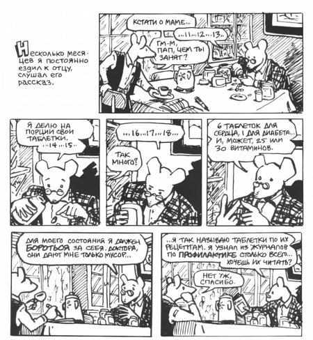 Графический роман «Maus» демонстрирует, как стратегии «загрязнения» кадра и визуальной плотности могут передавать психологический шум. В сценах, изображающих концентрационные лагеря, такие как Аушвиц, Шпигельман отказывается от крупных, драматических ономатопей. Вместо этого хаос и акустический ужас передаются через предельную насыщенность страницы. Частые, мелкие кадры, плотная штриховка, нагромождение фигур и деталей создают ощущение клаустрофобии и сенсорной перегрузки. Множество лиц с открытыми ртами, изображенных без речевых бабблов, визуализирует всеобщий крик, который невозможно выразить словами. Таким образом, шум Холокоста передается не через прямой звук, а через подавляющую, «шумящую» визуальную структуру самого повествования, где каждая страница становится свидетельством невыразимого акустического кошмара.