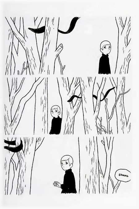 Тишина в комиксе материализуется в сложной симфонии визуальных стратегий, преобразующих отсутствие звука в насыщенное повествовательное присутствие. В основе этого лежит работа с пустотой, как внутри кадра, так и в безбрежном межкадровом пространстве. Негативное пространство и разряженные поля вокруг панели рождают эффект акустической дистилляции, перенаправляя взгляд читателя от изображенного к невысказанному. Наиболее ярко этот принцип воплощается в «воздушных» панелях с минималистичной архитектурой — одиноких фигурах, затерянных в бескрайних пейзажах, или статичных интерьерах.
