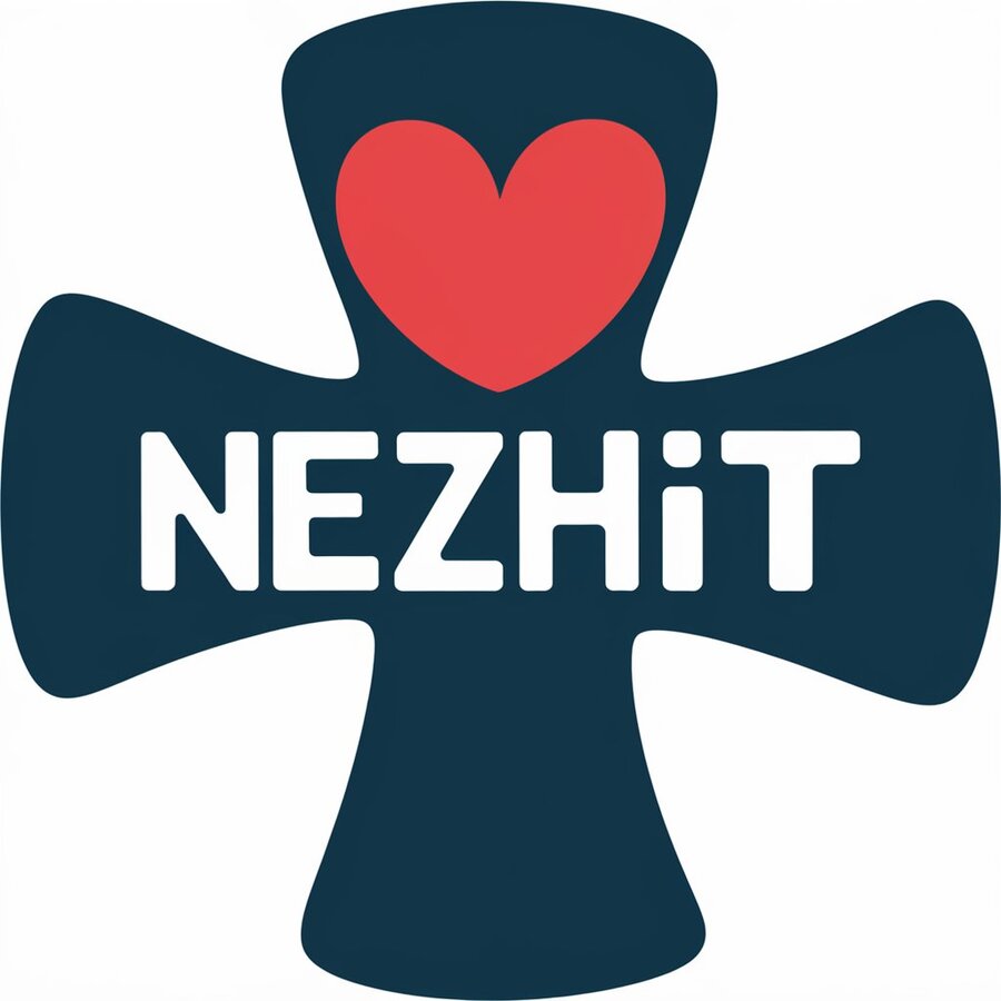 /imagine prompt: Create a logo for NEZHIT pharmaceutical donor company with a style as it was made by kids, use only red, dark blue and white colors