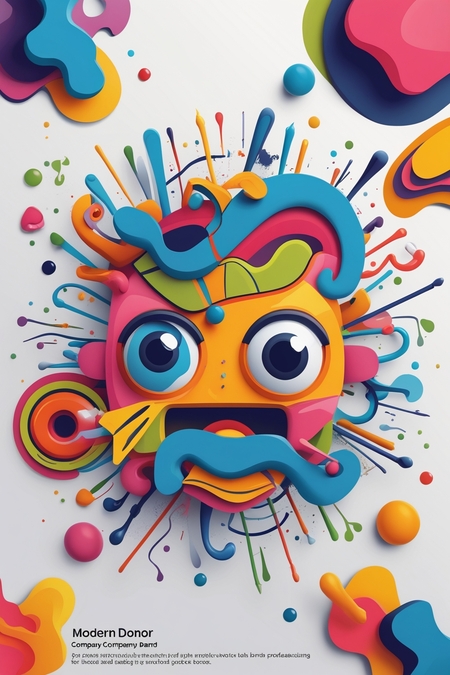 Generate advertising posters for modern donor company brand. The lines are crazy and captures the standard of modern art. The overall design is exciting and unconventional, perfectly capturing kids art works.