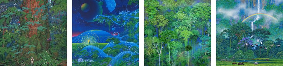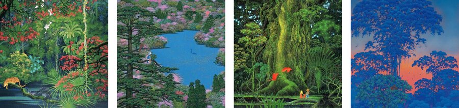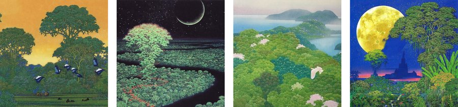 Хироо Исоно — японский художник, чьи работы наполнены тишиной, покоем и красотой природы. Его красочные медитативные пейзажи будто уносят в другой мир, где хочется задержаться подольше. Мне захотелось создать еще больше завораживающих изображений и обучить нейросеть стилю Исоно, чтобы она тоже умела передавать это чувство спокойствия и гармонии.