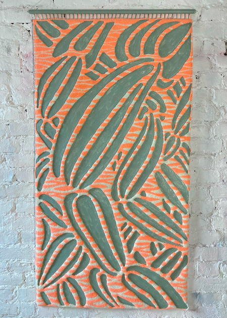 Опунция у моря окрашенного закатным солнцем. Сочетание гладких поверхностей и ворсистых объёмов ручной ковровой вышивки, и нежных цветов содаёт особое «тактильное» настроение мягкого вечера у моря. Материалы: акрил Размеры: 150×80 Техника: ручная ковровая вышивка