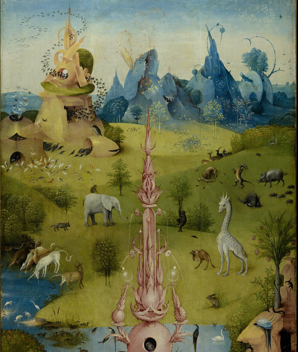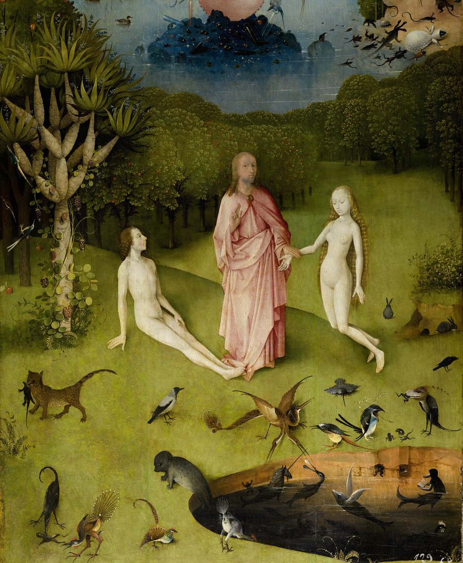 Сад земных наслаждений — это изображение Рая, где упразднён естественный порядок вещей и полновластно царят хаос и сладострастие, уводя людей от пути спасения. Этот триптих нидерландского мастера является самым лирическим и загадочным его произведением: в созданной им символической панораме христианские аллегории смешиваются с алхимическими и эзотерическими символами, что породило самые экстравагантные гипотезы касательно религиозной ортодоксальности художника и его сексуальных склонностей. «Федерико Дзери»[1]