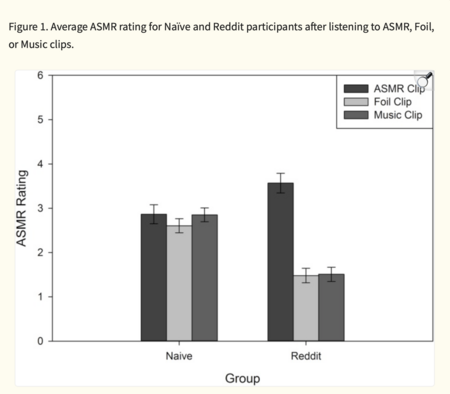 В исследовании сравнивались группы людей, испытывающих ASMR, и тех, кто его не испытывает. У участников, чувствительных к ASMR, наблюдались более сильные изменения настроения: повышение чувства расслабления и удовольствия после просмотра триггер-видео. Помимо этого, были зафиксированы физиологические изменения: снижение частоты сердечных сокращений и повышенная кожная проводимость, что указывает на одновременную активацию и расслабление.