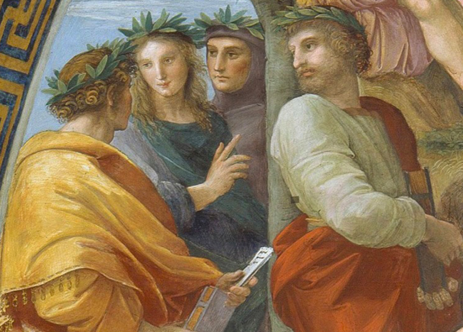 Рафаэль Санти, фреска «Парнас», ок. 1509–1510. / Франческо Петрарка среди греческих поэтов.