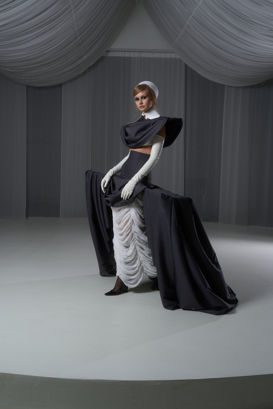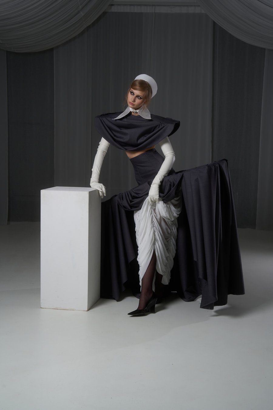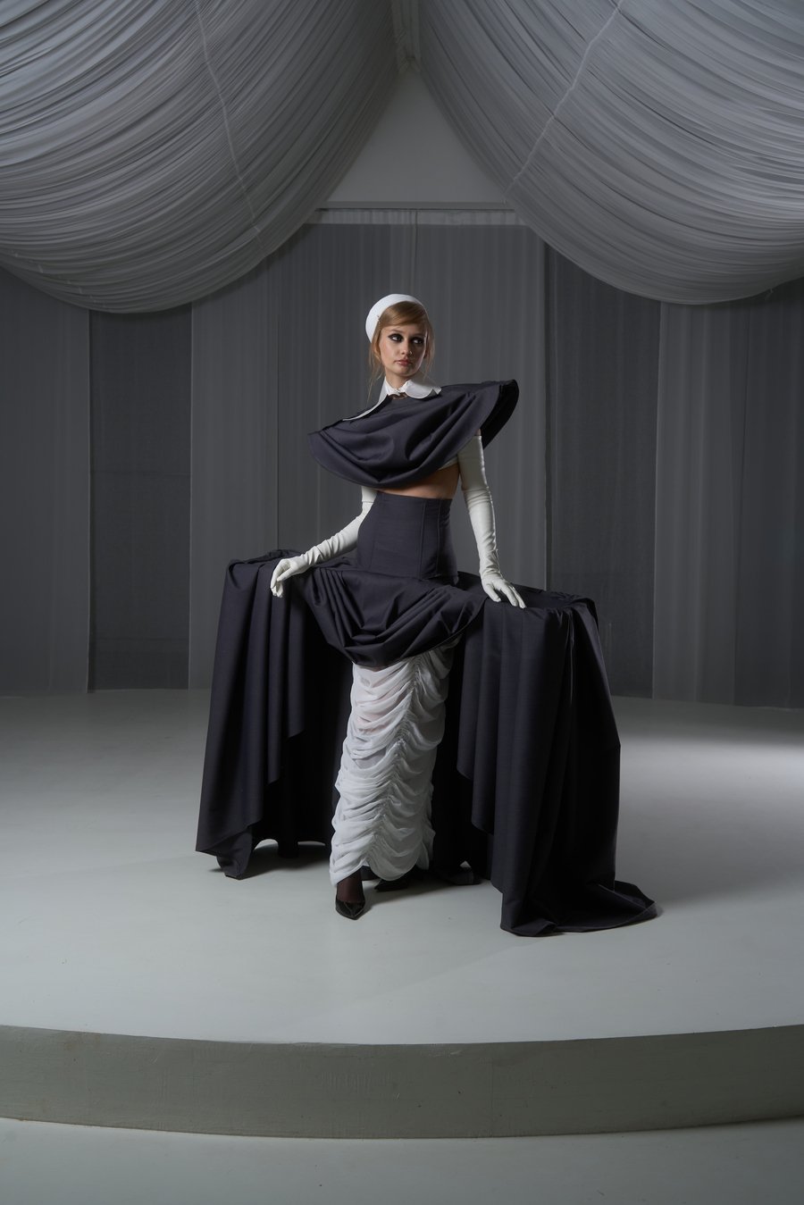 Это собирательный образ женщины, находящейся одновременно как в центре внимания, так и в тени. Она живёт в условиях постоянного внимания со стороны: камер, прессы, и при этом остаётся частично недоступной, как бы за занавесом.