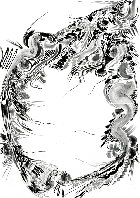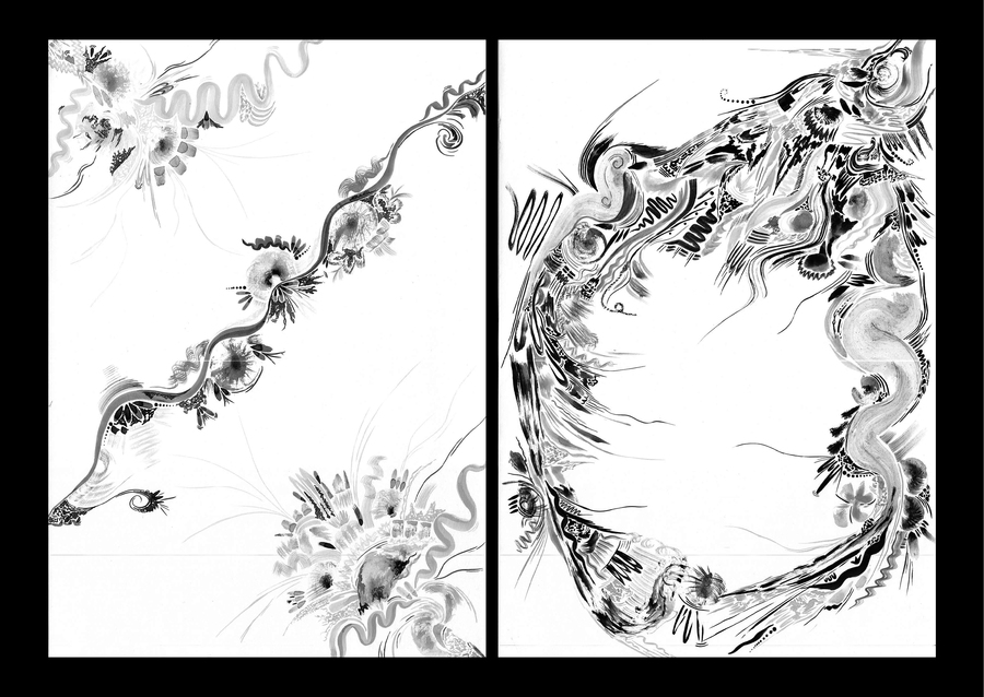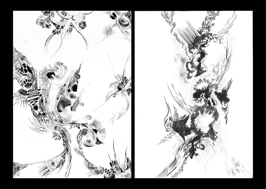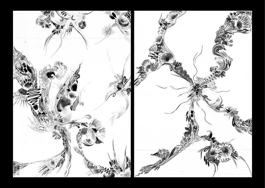 Это серия работ тушью, где мощное и тёмное переплетается с лёгким, почти прозрачным. Каждая работа, словно танец контрастов: плотные штрихи соседствуют с воздушными размывами, создавая ощущение хрупкого равновесия. Чётких границ нет, только диалог между силой и нежностью, тьмой и светом.
