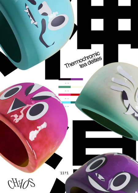 Набор из 4 уникальных чайных божеств, для продолжения ритуала чаепития каждая фигурка покрыта термохромным слоем, который меняет цвет в зависимости от температуры. Помимо эстетической составляющей, каждое божество также служит функциональной формой для выпечки печенья.