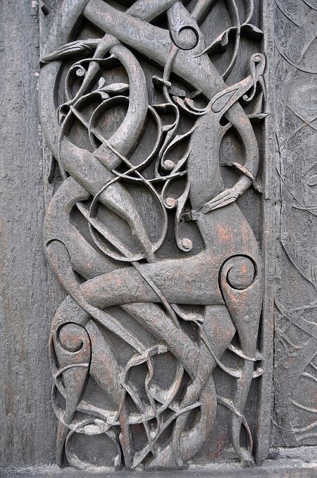 Деревянная церковь в Урнесе, резьба, Норвегия, XII в.