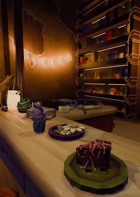Обслуживание клиентов Необходимо вовремя принимать и приносить заказы. У каждого посетителя свой таймер терпения: некоторые ждут долго, другие требуют мгновенного обслуживания. Важно принести клиенту желаемое блюдо, догадываясь о предпочтениях клиента по внешнему виду, если игрок оплошает начнётся перепалка. Например, плотоядные виды не захотят давиться травой, а травоядные не смогут питаться жуками.