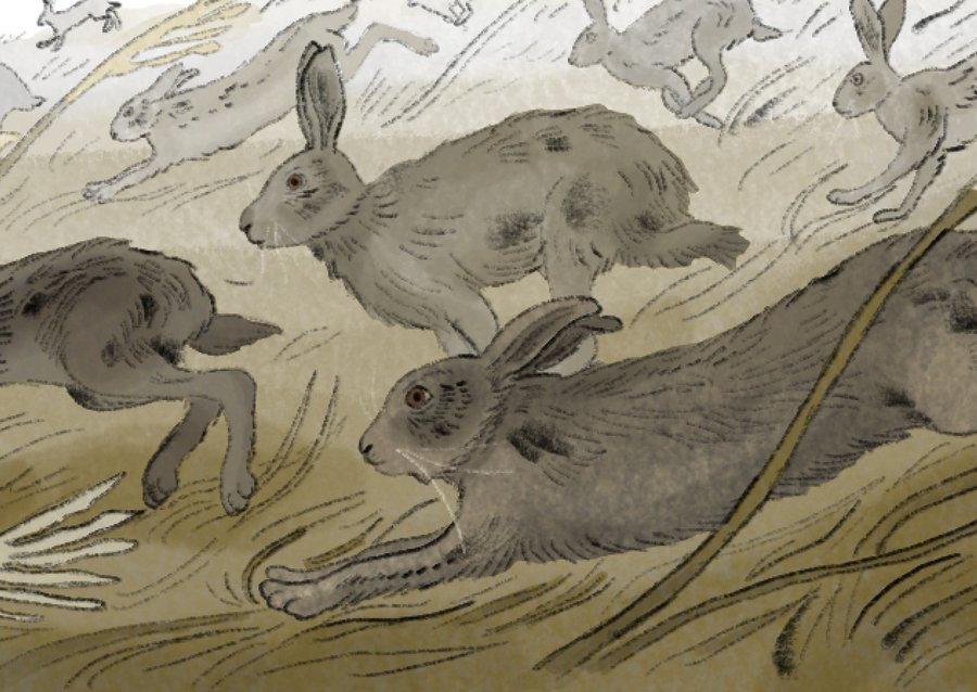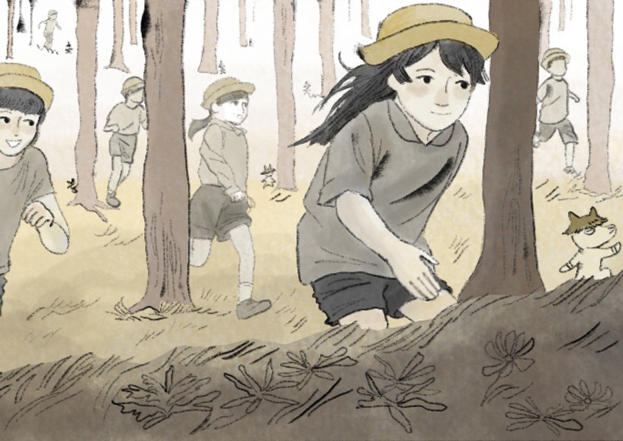 Проект посвящен детской игре в Японии под названием «Они-гокко», объединяющей догонялки, салки и прятки. В иллюстрациях персонажами, которые бегают друг за дружкой, стали не только дети, но и животные. В первой работе содержится отсылка к осеннему празднику луны (ведь пятна на Луне — это зайцы!), во второй — к церемониям в честь лесных духов, в третьей — к известным японским макакам.