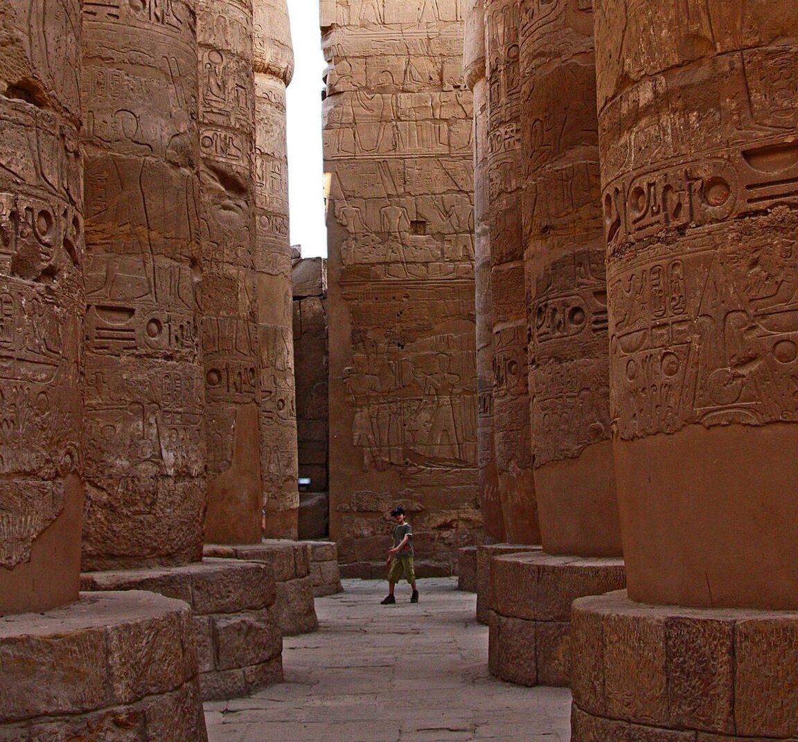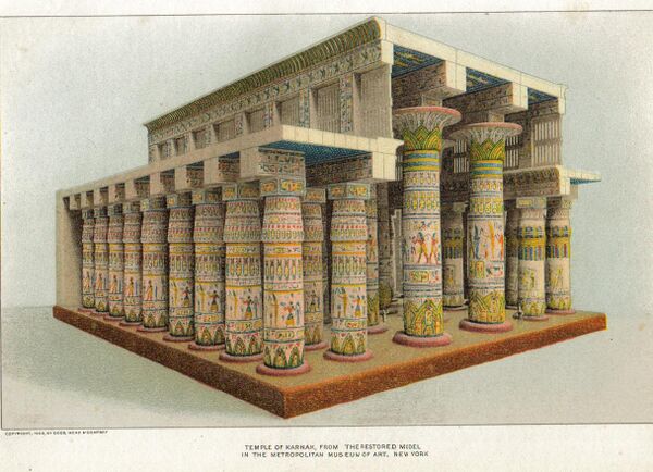 Гипостильные залы со множеством колонн создавали эффект ритуального движения и подчёркивали сакральность пространства.