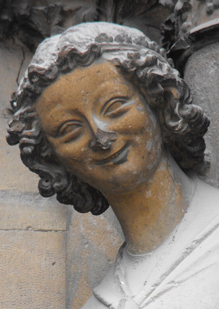 «Улыбающийся ангел», скульптура, Неизвестный мастер Реймсского собора, XIII в.