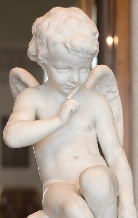 В отличие от пухлых младенцев-путти, этот ангел обладает телом идеального, грациозного юноши. Его фигура полна изящества и юной красоты, что усиливает чувственность сцены. . Поза динамична и неустойчива: он словно парит в воздухе, а его одежда развевается, создавая ощущение движения.