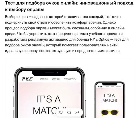 Для продвижения рекламной активации бренда P.Y.E Optics были протестированы два формата контента: текстовая статья на DTF и VC и два коротких вертикальных видео в YouTube Shorts. Оба подхода позволили получить важные инсайты о том, как разные типы платформ влияют на восприятие материала и уровень его распространения.