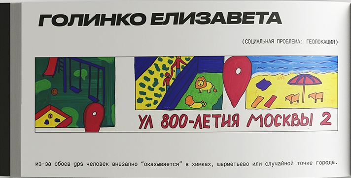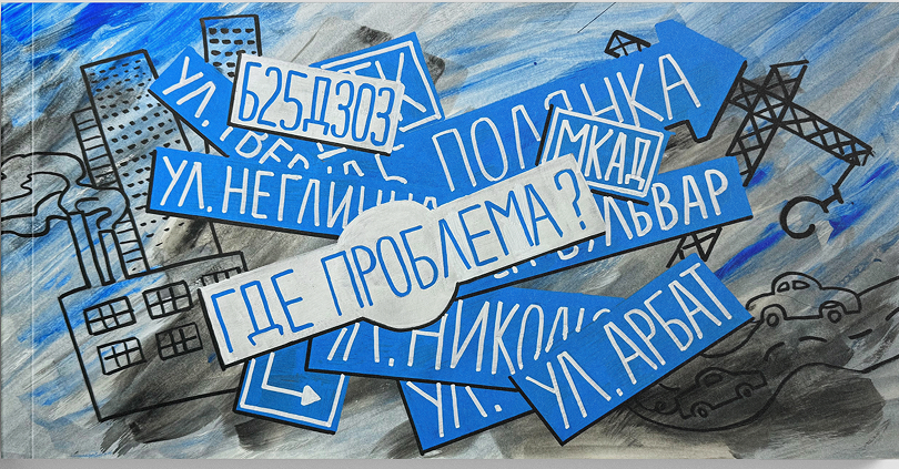 Групповой проект о городских проблемах Москвы: чтобы визуализировать скрытую уязвимость конкретной улицы, дома или квартала, используется форма адресных табличек, превращаемых в арт-объекты. Мы охватываем разнообразные темы — от шума и дефицита зелени до чрезмерной плотности застройки или утраты исторических объектов, тем самым акцентируя внимание горожан на дефектах городской среды.