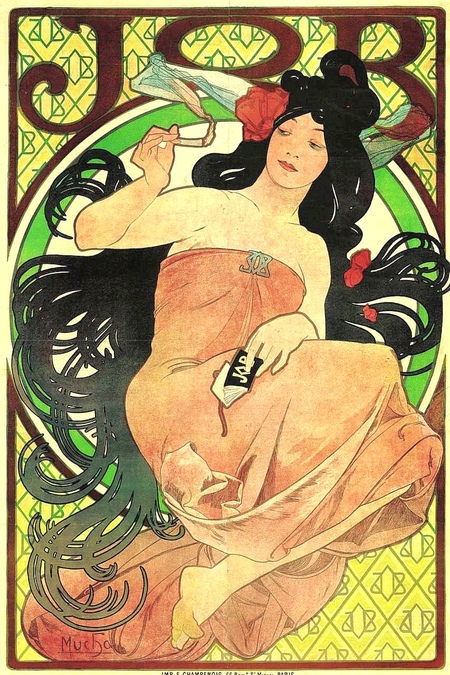 Альфонс Муха, реклама папиросной бумаги «Job», 1898 г.