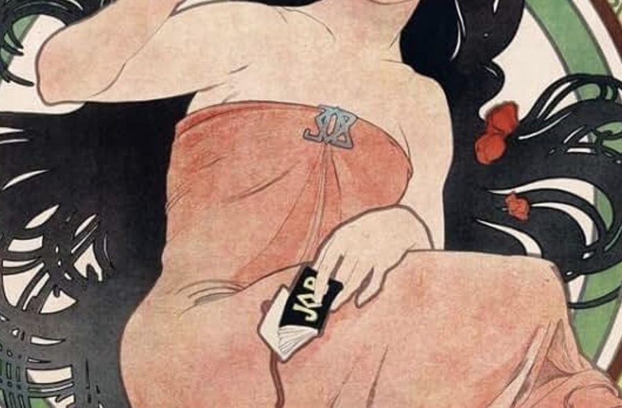 Альфонс Муха, реклама папиросной бумаги «Job», фрагменты, 1898 г.