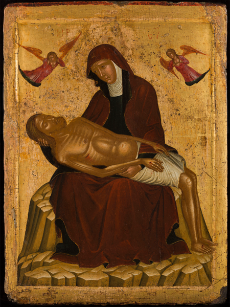 Микеланджело «Пьета», 1498-1499, Музеи Ватикана, Ватикан Крито-венецианская школа (Андреас Павиас? Николас Цафурис?) «Пьета», 1480-1500, Парижские Музеи. Малый Дворец, Париж