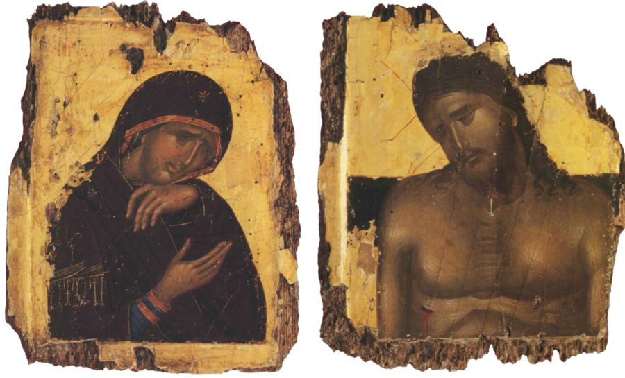 Неизвестный греческий мастер диптих «Богоматерь и Христос», 1381, Монастырь Преображения Неизвестный мастер из Константинополя «Икона Новозаветной Троицы», 1450, Художественный музей Кливленда, Огайо