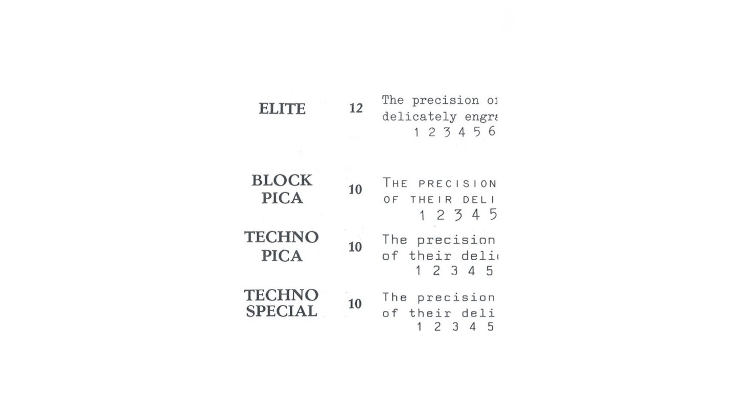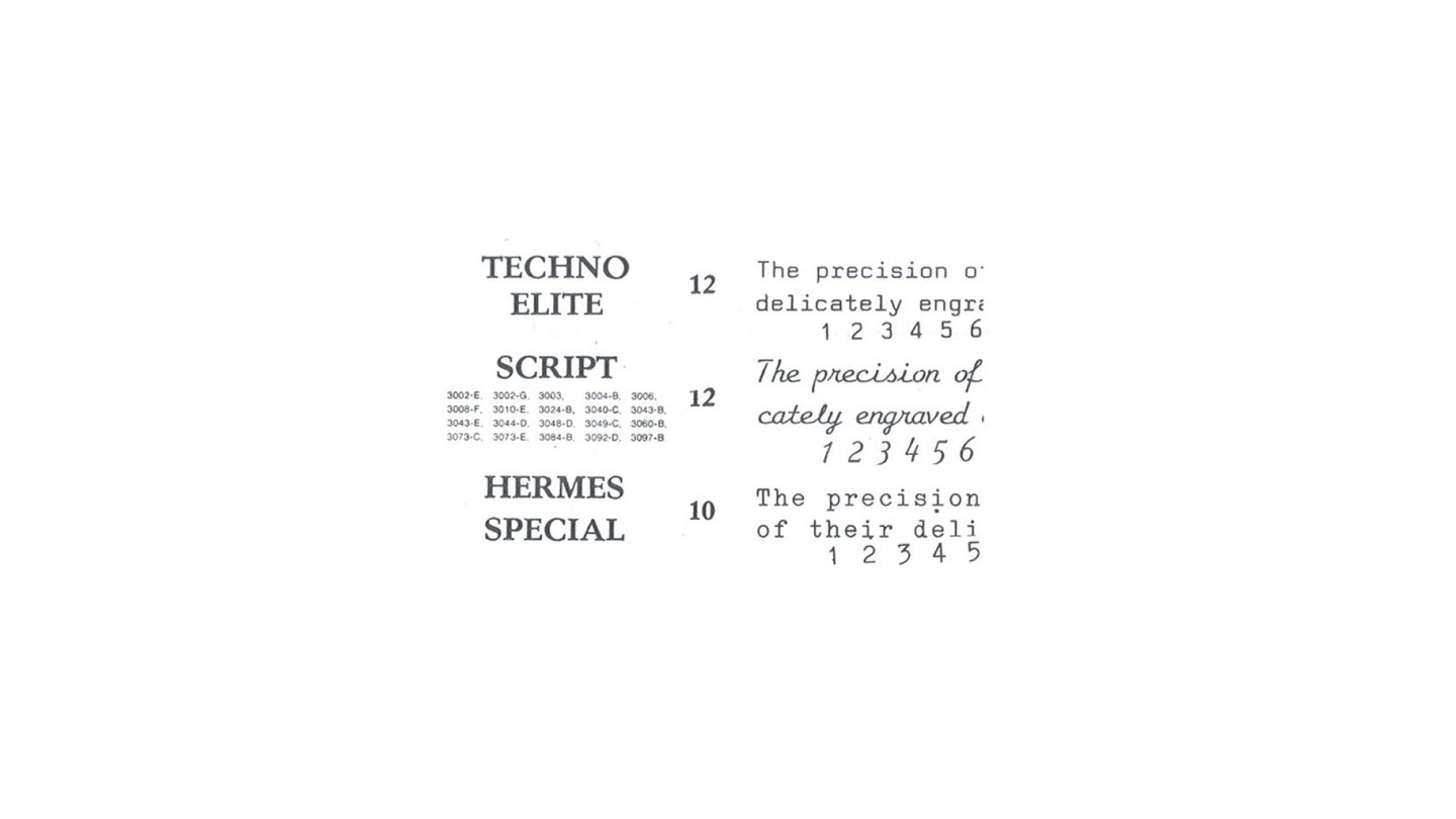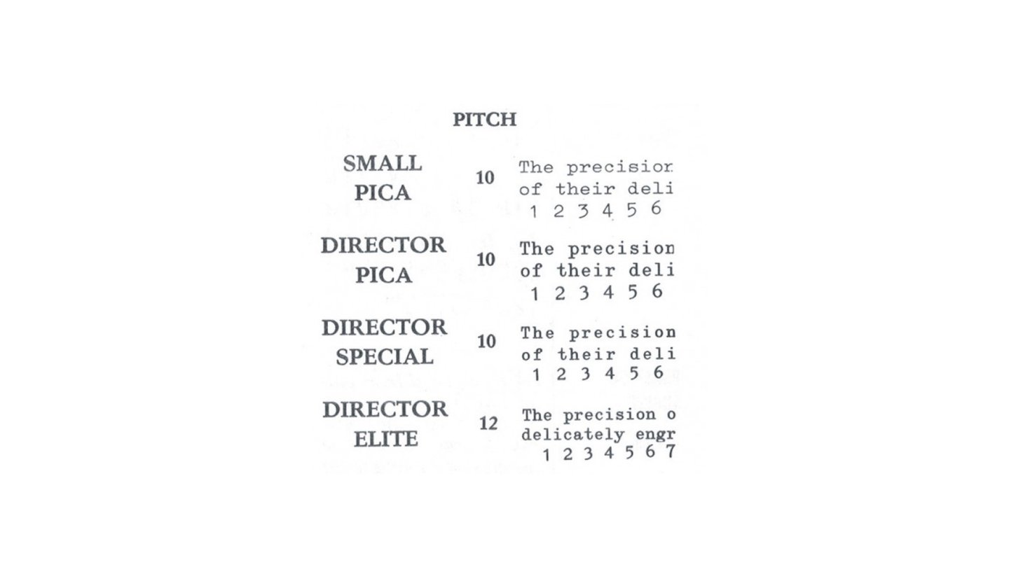 В качестве примера можно рассмотреть фрагмент каталога швейцарской фирмы Paillard S.A., выпускавшей технику под брендом Hermes. В документации указан шаг печати (pitch), определяющий количество знаков на дюйм, а также приведены образцы шрифтов с их заводскими названиями.
