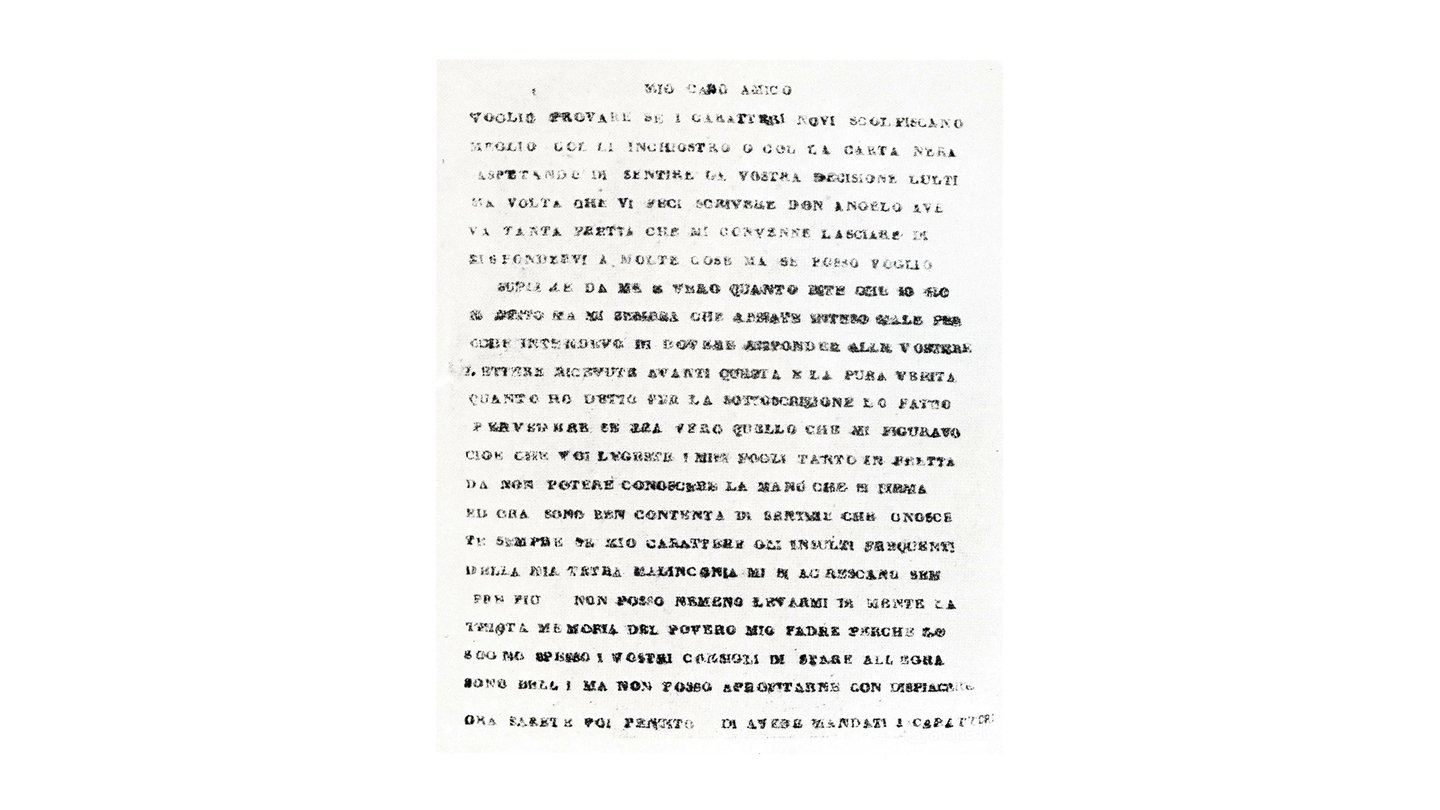 Письмо, напечатанное на пишущей машинке Пеллегрино Турри