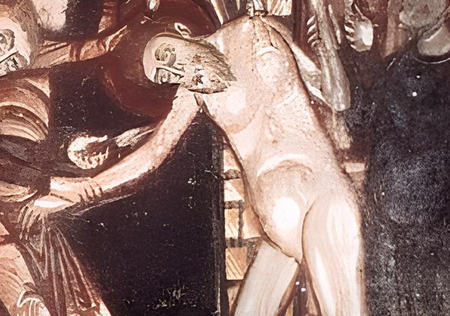 На второй фреске иллюстрируется библейский сюжет (скорее всего, искупление или жертвоприношение).