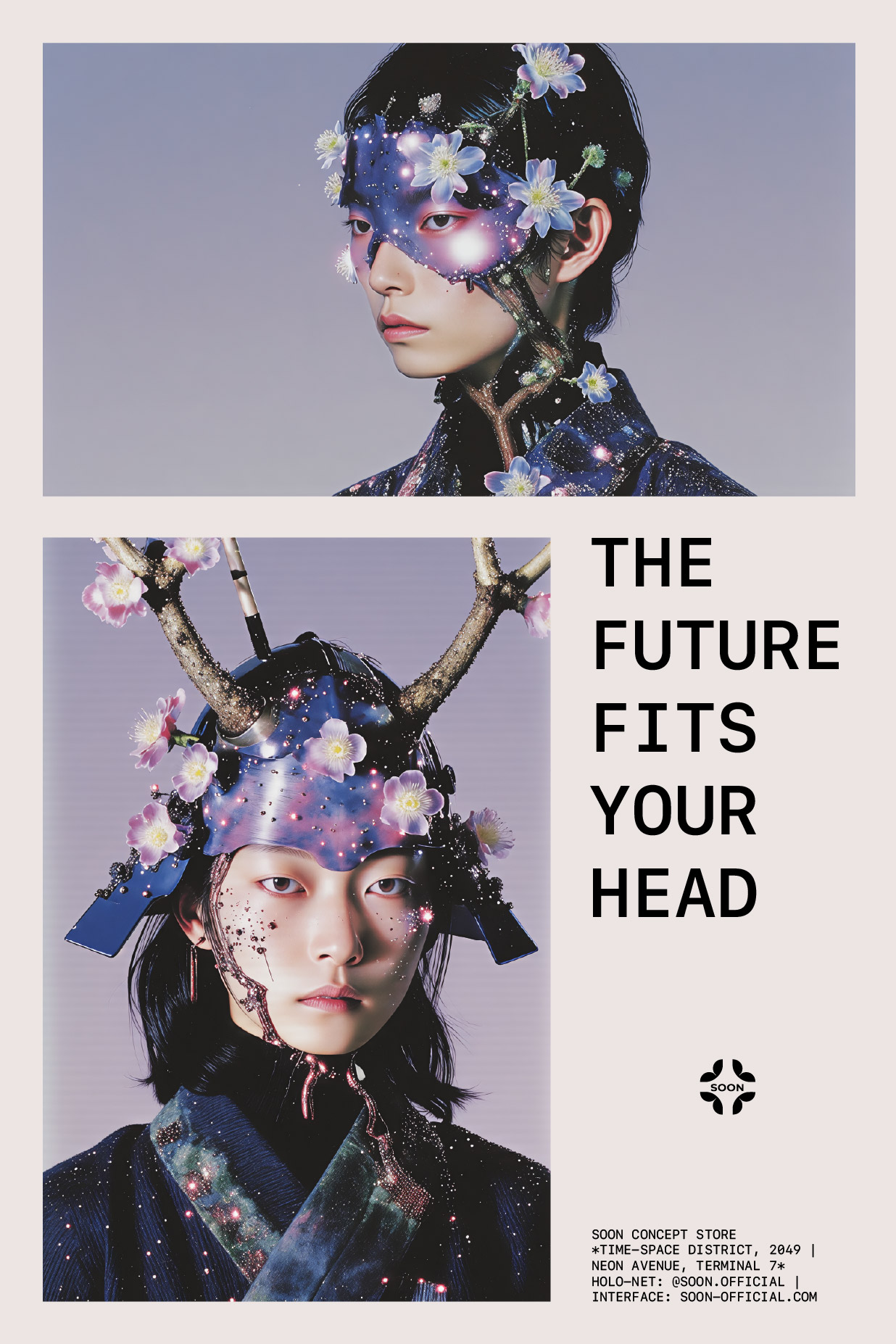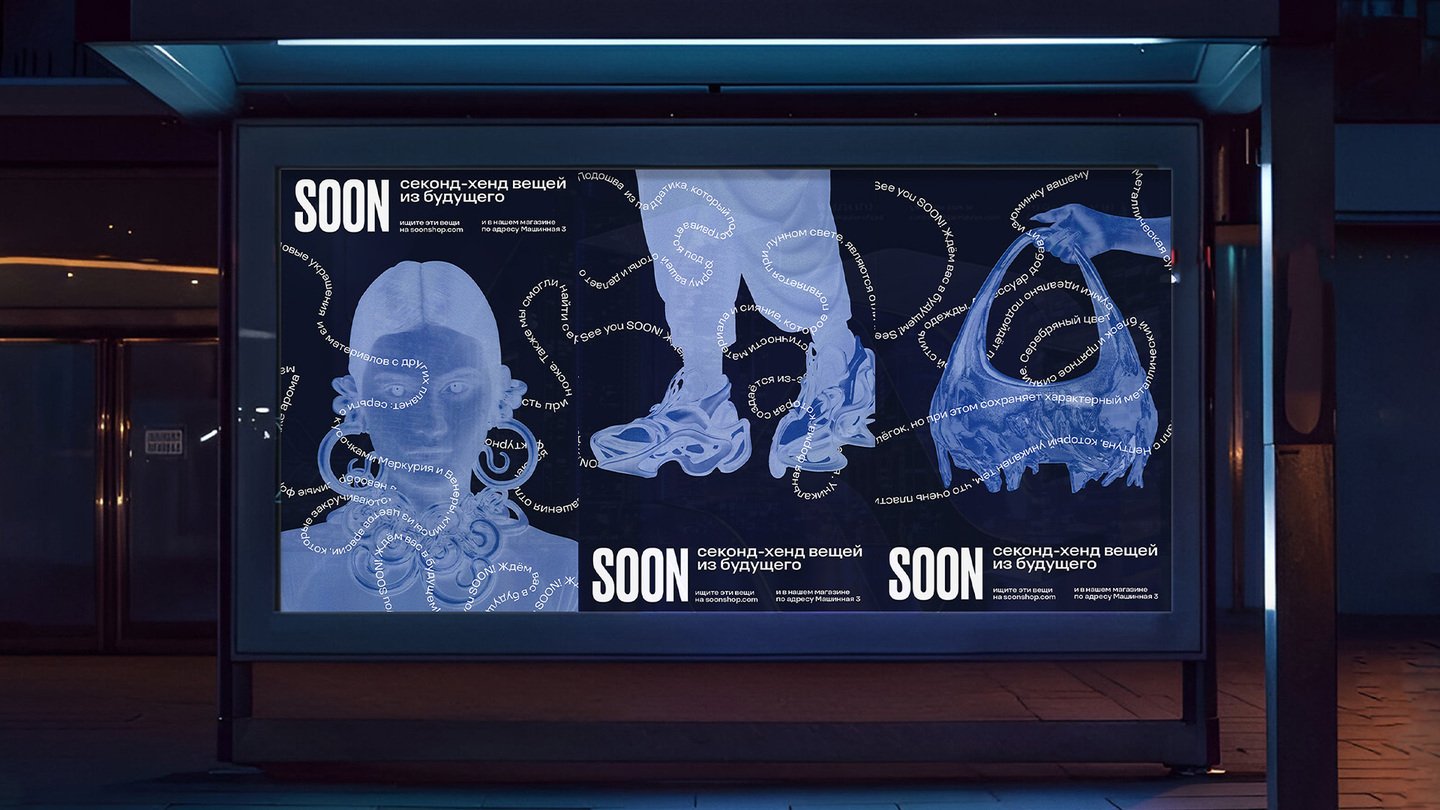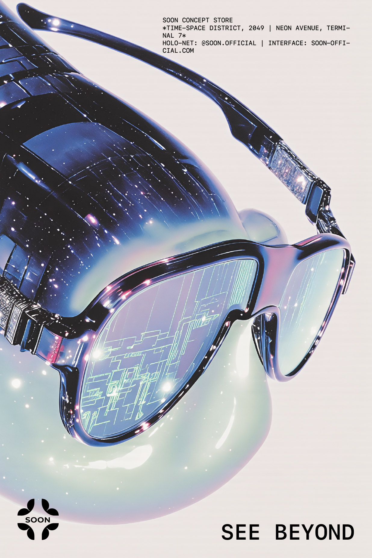 Концепция айдентики предложенная deepseek: слияние биологического и цифрового кода. Одежда SOON — это не просто вещи, это «живые интерфейсы». В их основе лежит гипотеза, что в будущем материя будет программируемой, а данные — осязаемыми. Ткань становится носителем информации, а цифровые потоки обретают пластику и тактильность природных материалов.