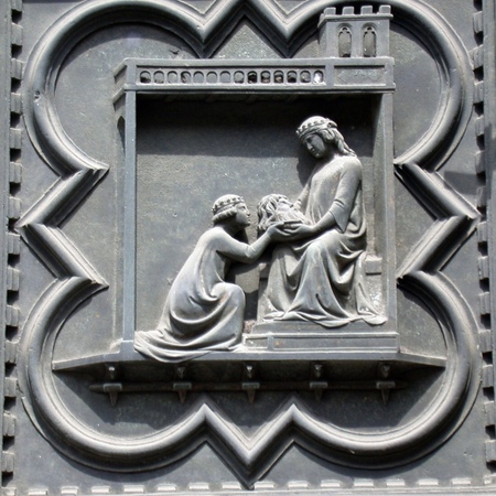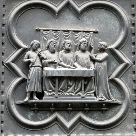 Южные бронзовые двери для баптистерия Флорентийского собора, сюжеты «Танец Саломеи» и «Вручение головы святого Иоанна Ироду Антипе». Андреа Пизано, 1330–1336 гг.
