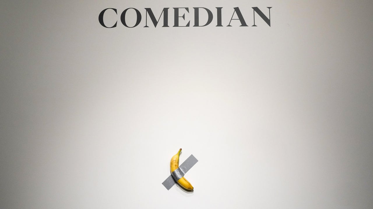 «Комедиант» Маурицио Каттелана (2019) [Фотография] // CBS News. — URL: https://assets2.cbsnewsstatic.com/hub/i/r/2024/11/21/1fe2f942-42c9-4f49-84df-43616043b484/thumbnail/1280x720/62e4ab6268ba42a003b149458520a0b5/gettyimages-2181027107.jpg?v=6056e68389c16974d8d95eeea60b7a3a (дата обращения: 25.11.2025).
