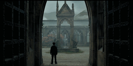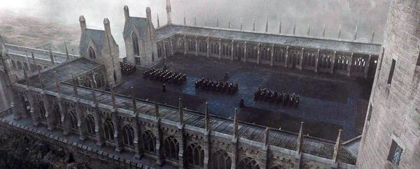 Клуатр с виадуком Кадр из фильма «Гарри Поттер и Орден Феникса». Реж. Д. Йейтс. 2007. Кадр из фильма «Гарри Поттер и Дары Смерти: Часть II». Реж. Д. Йейтс. 2011.